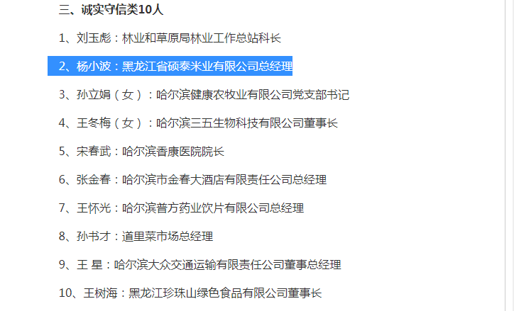 2、楊小波:黑龍江省碩泰米業(yè)有限公司總經(jīng)理